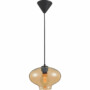 › Pendente com uma (1) cúpula em vidro âmbar e canopla em PVC.