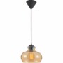 Pendente Rize com uma cúpula em vidro âmbar e canopla em aço. Cabo ajustável em até um metro.